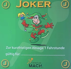 Dein Terminplan ist voll? Dir ist etwas dazwischen gekommen? Kein Problem! Bei uns in der Fahrschule erhältst du bei der Anmeldung den Joker.